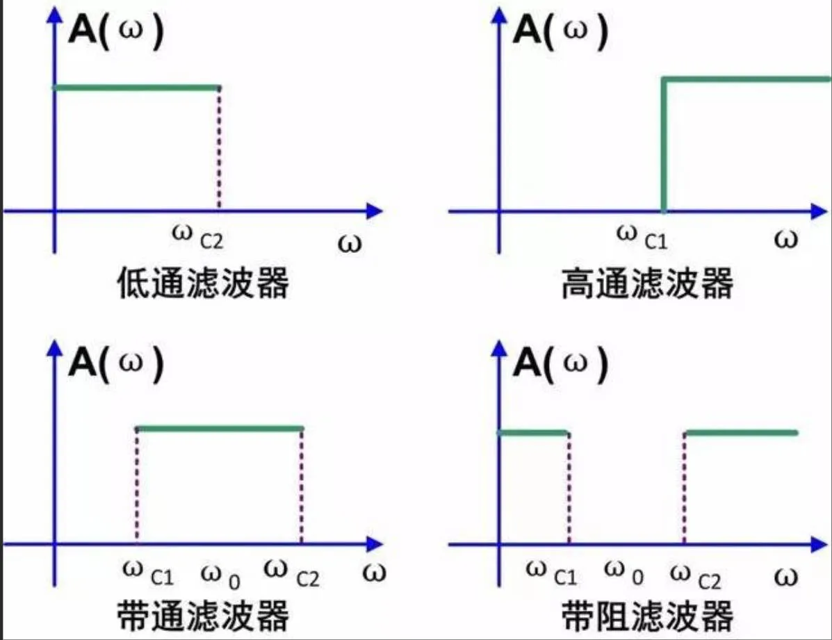 • 带阻滤波器(BEF):抑制特定频段(陷波频段)的信号,允许其他频率的信号正常通过,又称 “陷波器”